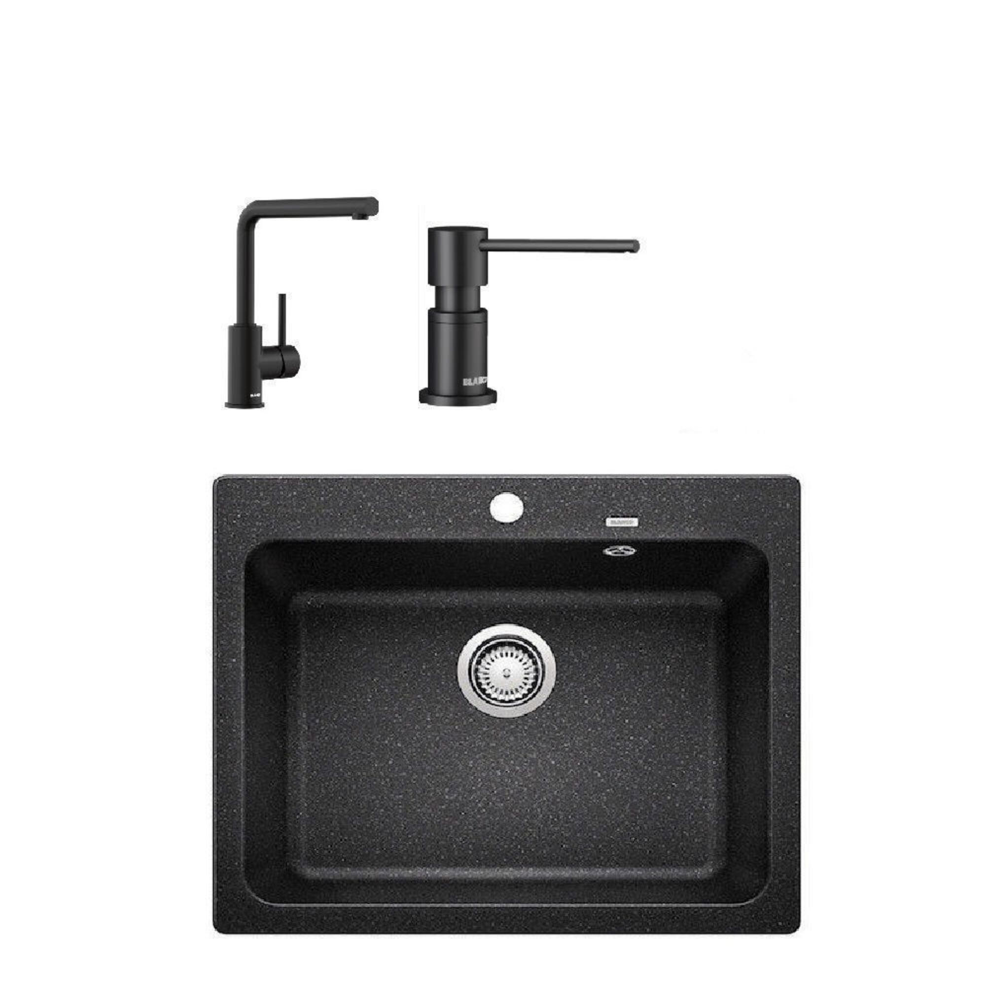Blanco NAYA 6 Siyah Granit Tezgahüstü Eviye Set [MILA Batarya+LATO Sıvı Sabunluk+Tel Izgara]