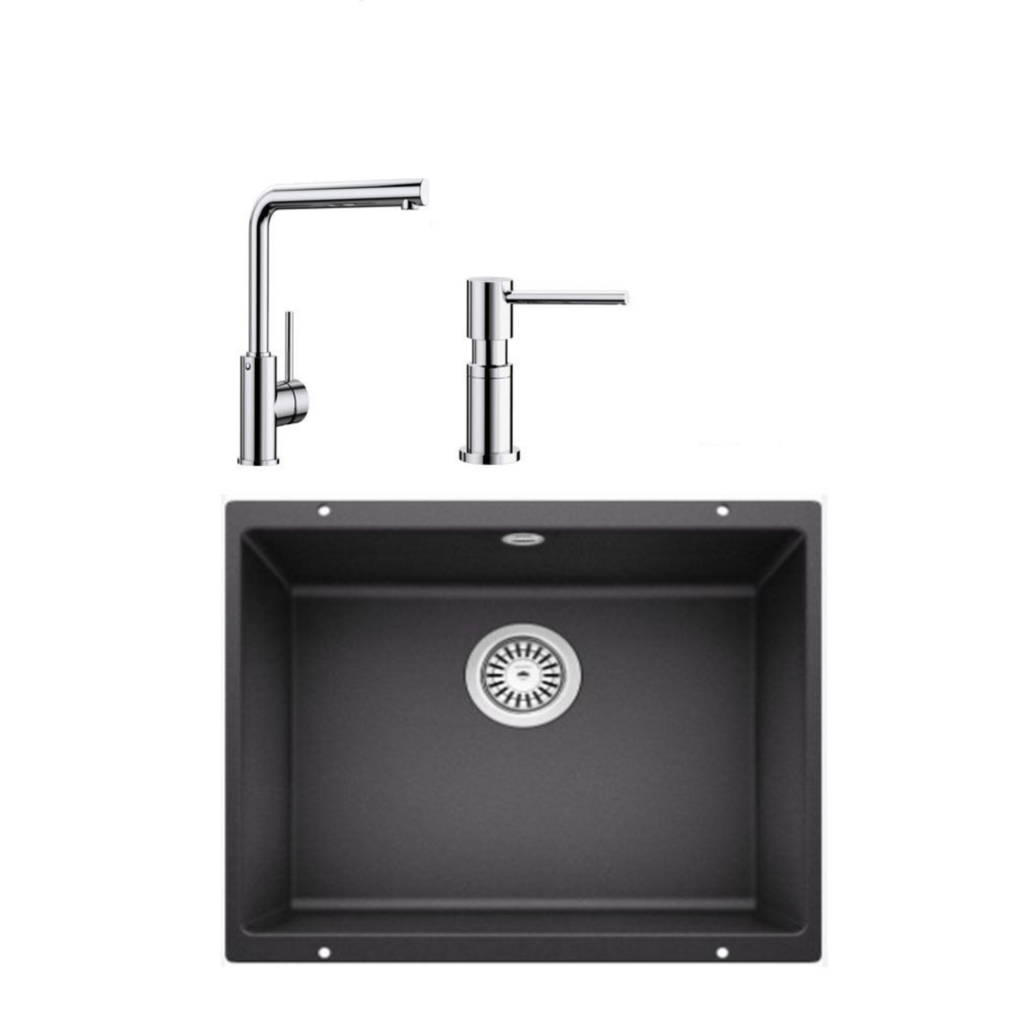 Blanco ROTAN 500 U ANTRASİT Granit Tezgahaltı Eviye+MILA KROM Batarya+LATO KROM Sıvı Sab.