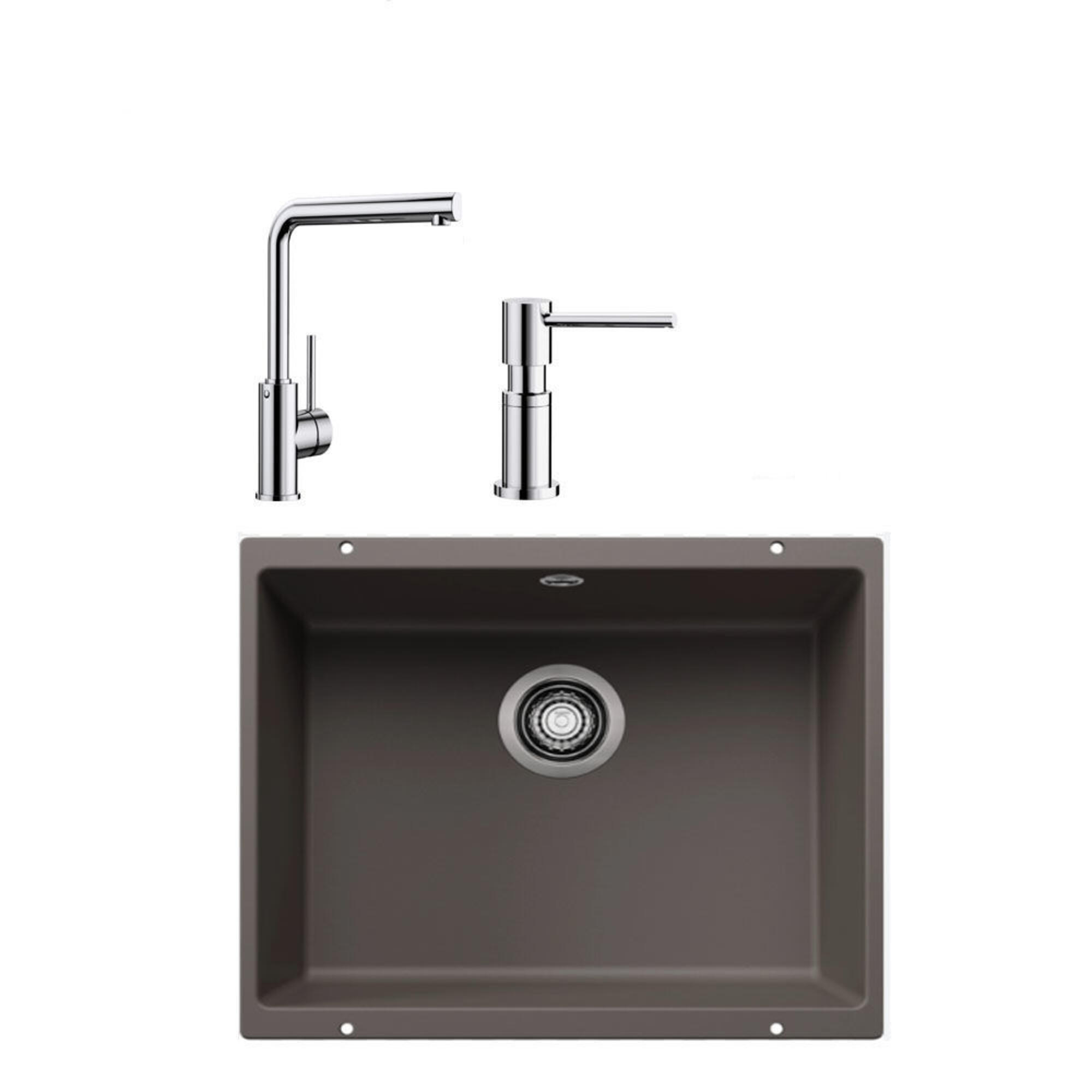 Blanco ROTAN 500 U VOLKAN GRİ Granit Tezgahaltı Eviye+MILA KROM Batarya+LATO KROM Sıvı Sab.