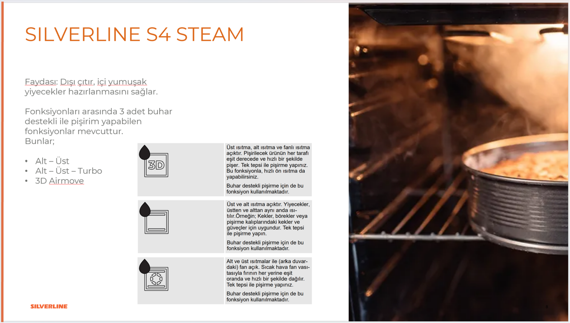 Silverline BO65PW01 S4 Beyaz Buhar Destekli Ankastre Fırın